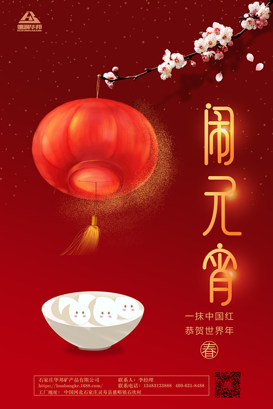 石家莊華邦礦產(chǎn)品有限公司再次恭祝您元宵節(jié)快樂!家庭美滿,事業(yè)發(fā)達(dá)節(jié)節(jié)高!